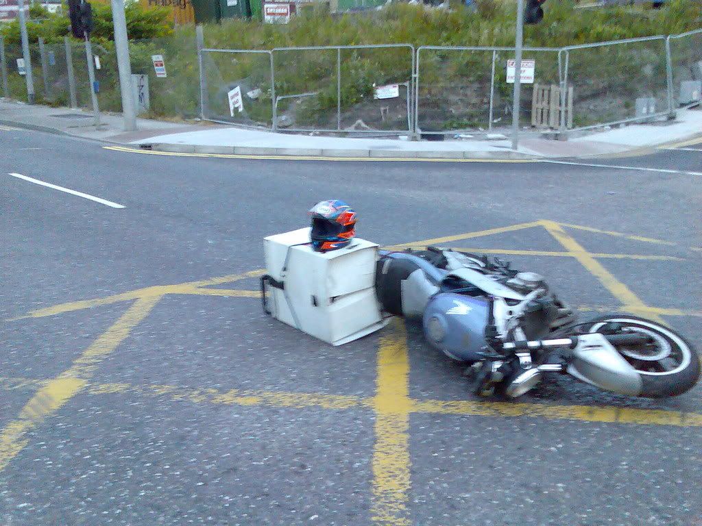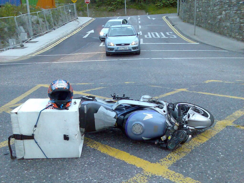 Yep 33 crashes, a silver citreon xsara ran a red light at speed and nailed me. brusied me arse, aldi pants didn’t have padding right where i landed, motocross/stomping boots saved me leg (again!)